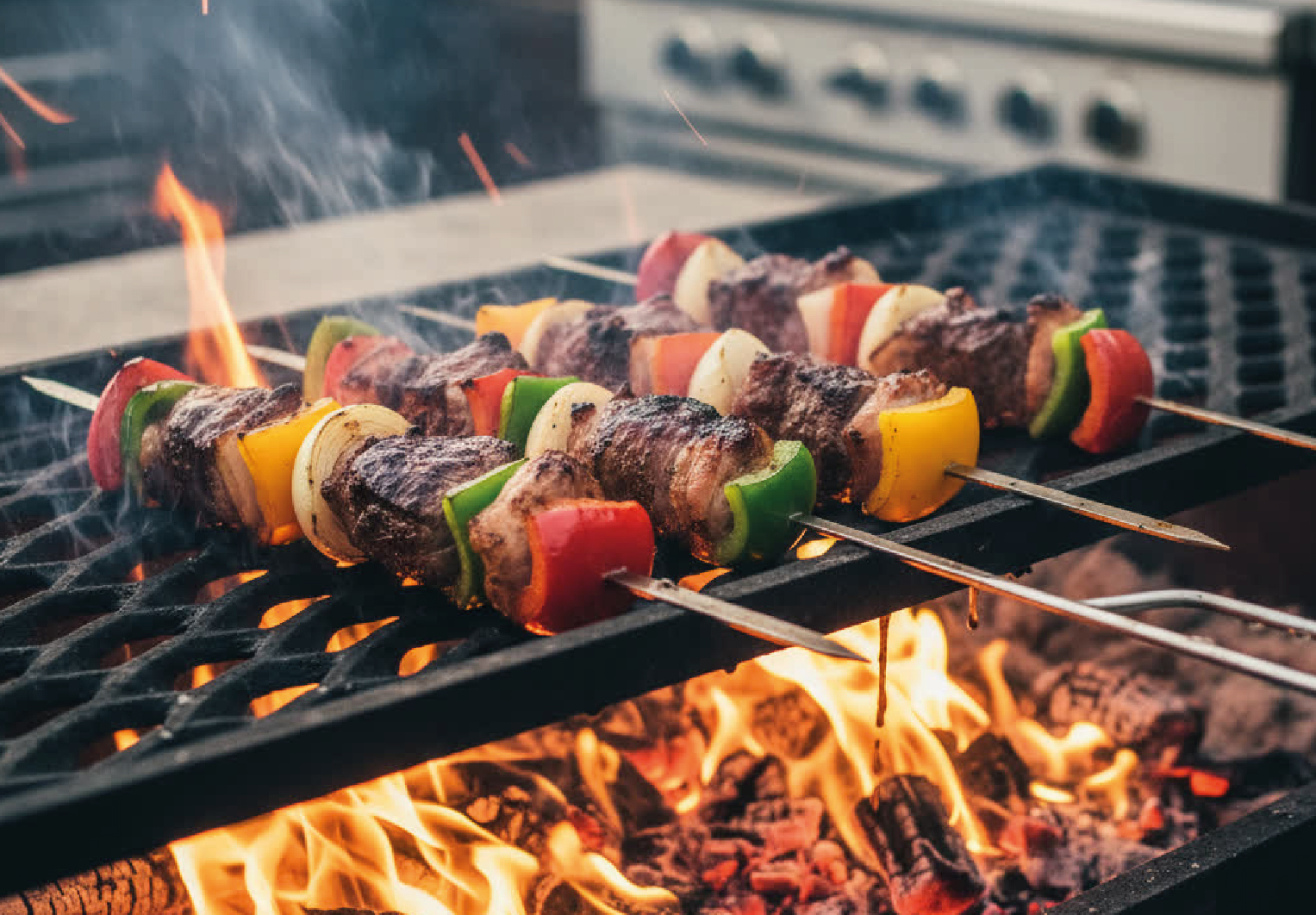 Coloca las brochetas sobre el asador a fuego lento o medio. Cocina girándolas constantemente para lograr una cocción uniforme.